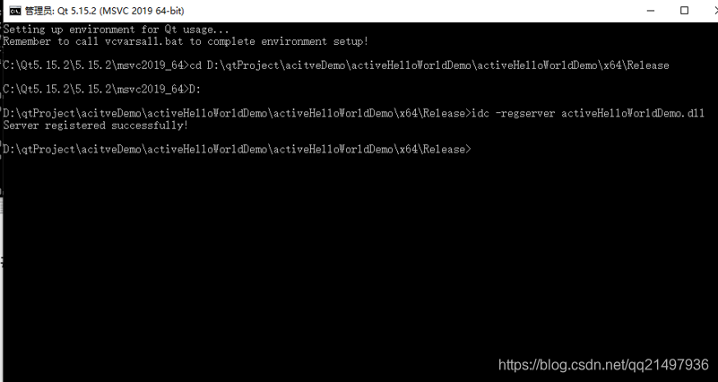 运行之前先要注册,使用Qt下自带的idc注册一下。