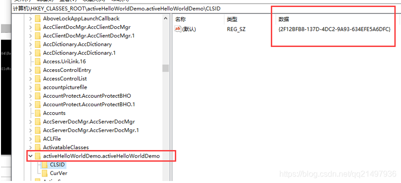 查看一下,打开注册表并搜索一下,确认clsid,如下图: