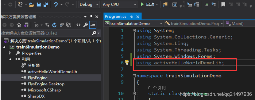 using System; using System.Collections.Generic; using System.ComponentModel; using System.Data; using System.Drawing; using System.Linq; using System.Text; using System.Threading.Tasks; using System.Windows.Forms; namespace trainSimulationDemo { public partial class Form1 : Form { public Form1() { InitializeComponent(); } private void Form1_Load(object sender, EventArgs e) { } private void button1_Click(object sender, EventArgs e) { activeHelloWorldDemoLib.activeHelloWorldDemo dlg = new activeHelloWorldDemoLib.activeHelloWorldDemo(); dlg.show(); } } }