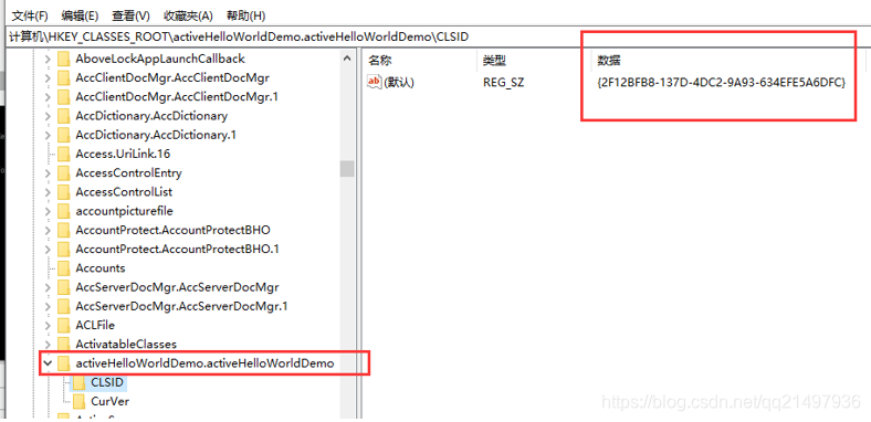 查看一下,打开注册表并搜索一下,确认clsid,如下图: