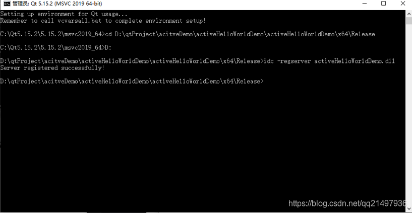 运行之前先要注册,使用Qt下自带的idc注册一下。