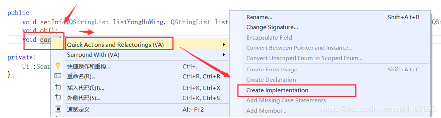 VS上不是很方便,需要自己写槽函数后,使用connect关联