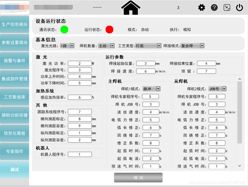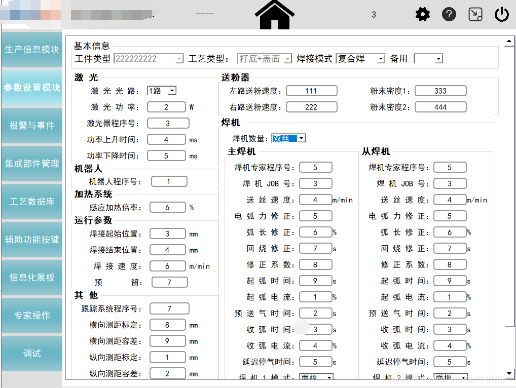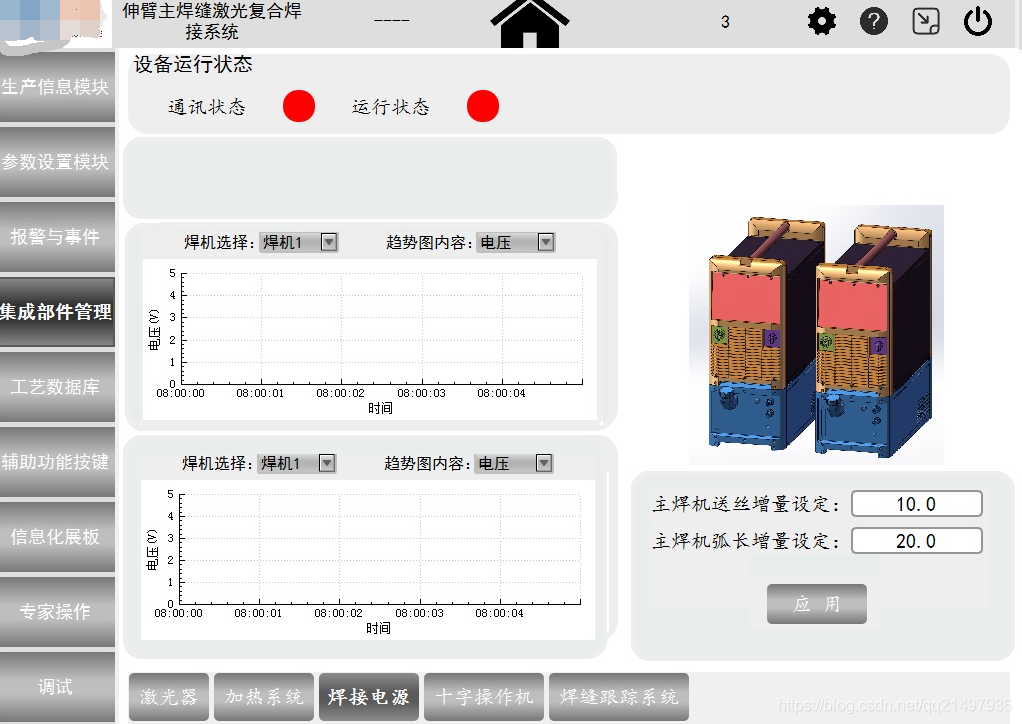9.集成部件界面:激光器,焊接电源,明弧摄像系统,机器人界面等等诸多子界面系统;