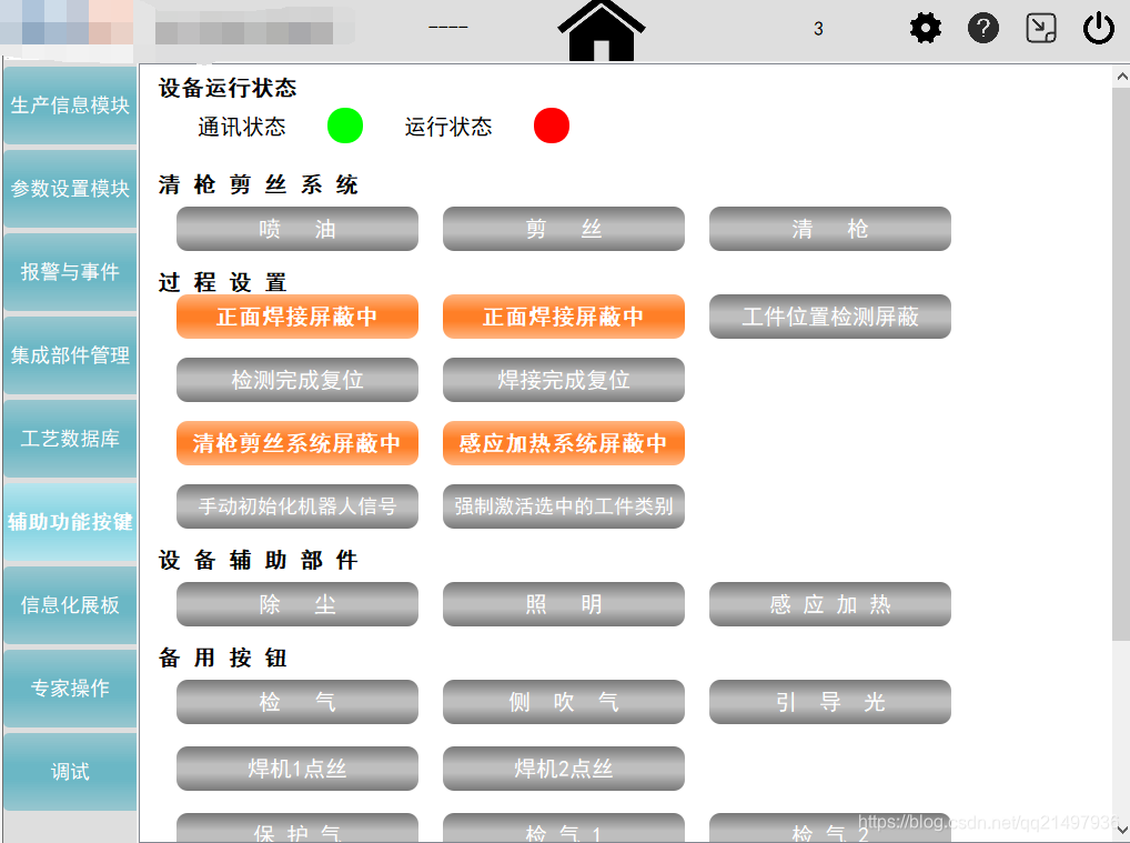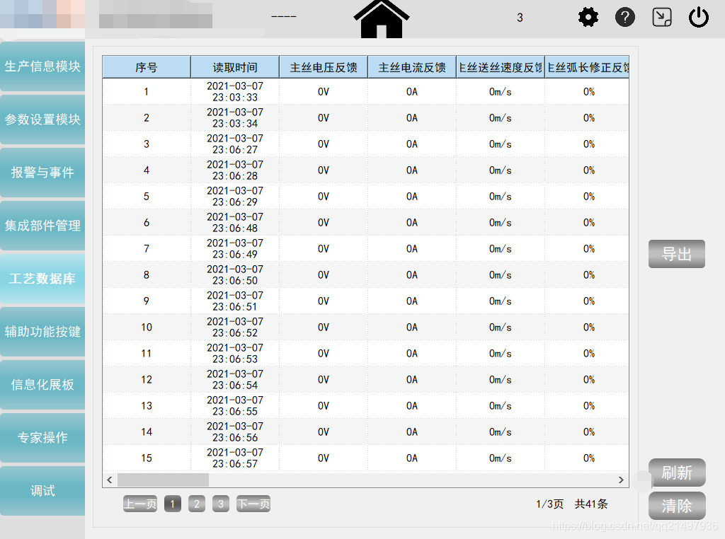 5.生产类界面:生产运行状态、工件信息、工件对应的参数套(1对多);