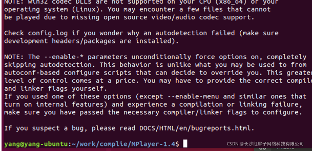cd MPlayer-1.4/ ./configure \ --prefix=/home/yang/work/rootfs/mplayer \ --host-cc=gcc \ --cc=arm-linux-gnueabihf-9.1.0-gcc \ --yasm=''