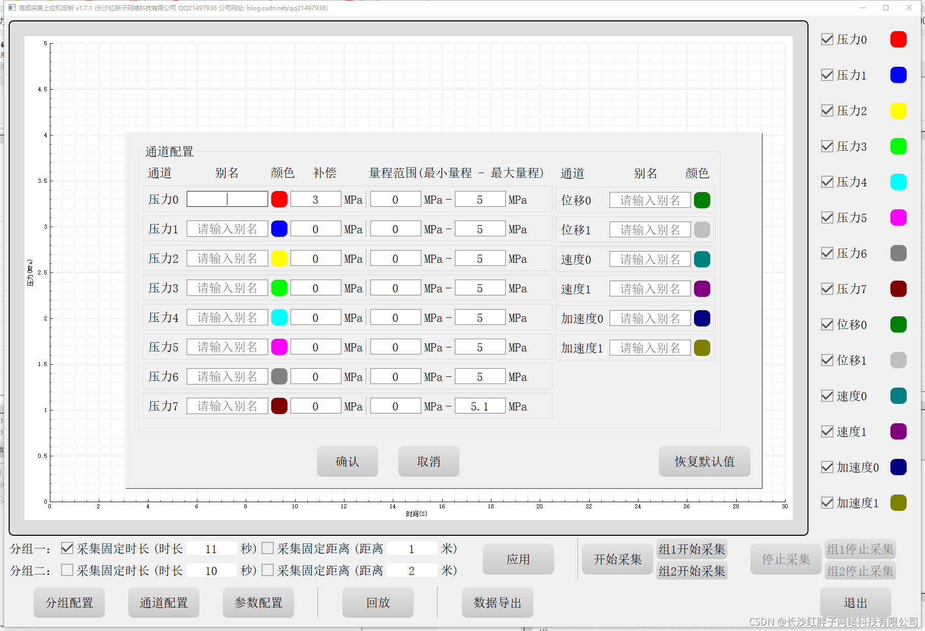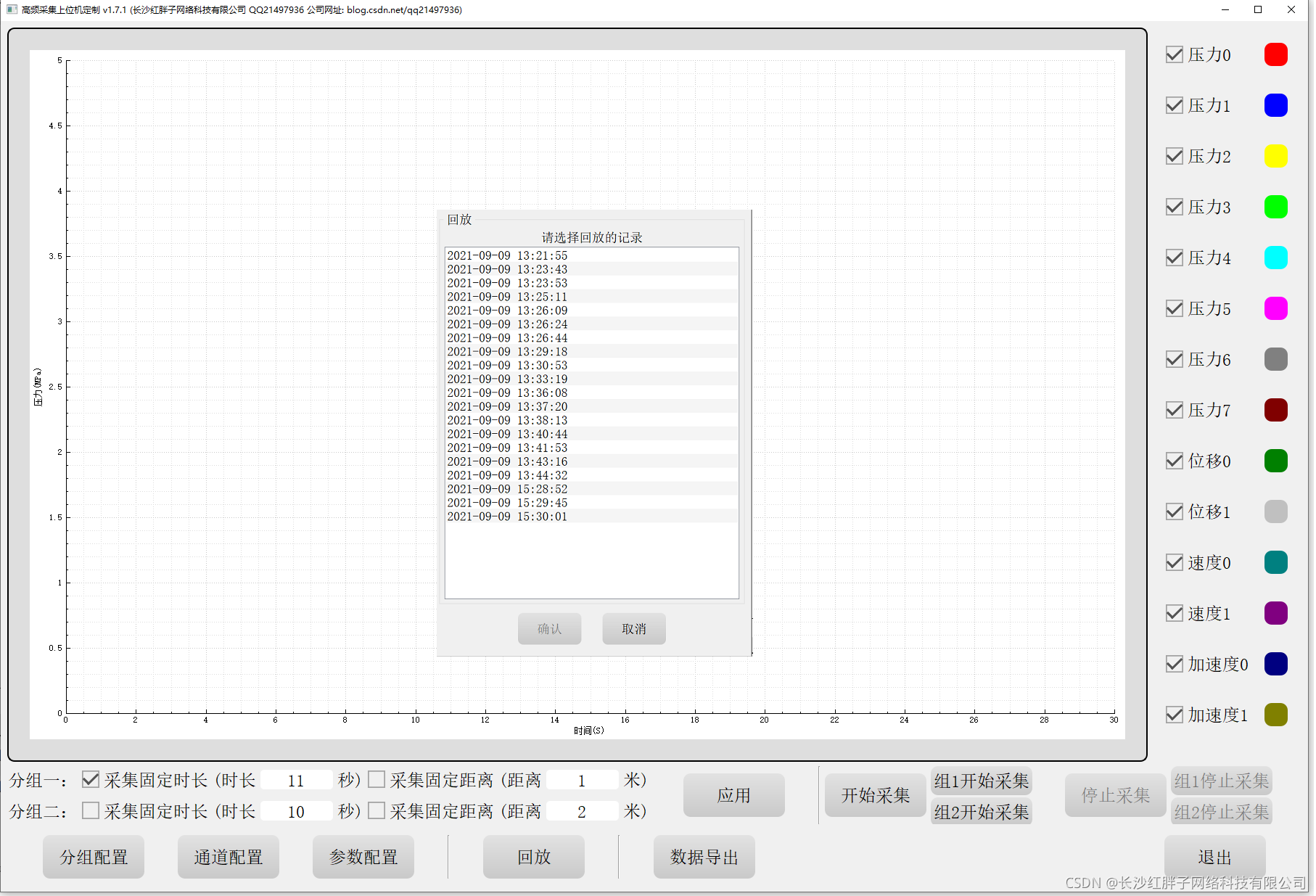 《案例分享:Qt高频fpga采集数据压力位移速度加速度分析系统(通道配置、电压转换、采样频率、通道补偿、定时采集、距离采集,导出excel、自动XY轴、隐藏XY轴、隐藏显示通道,文件回放等等)》