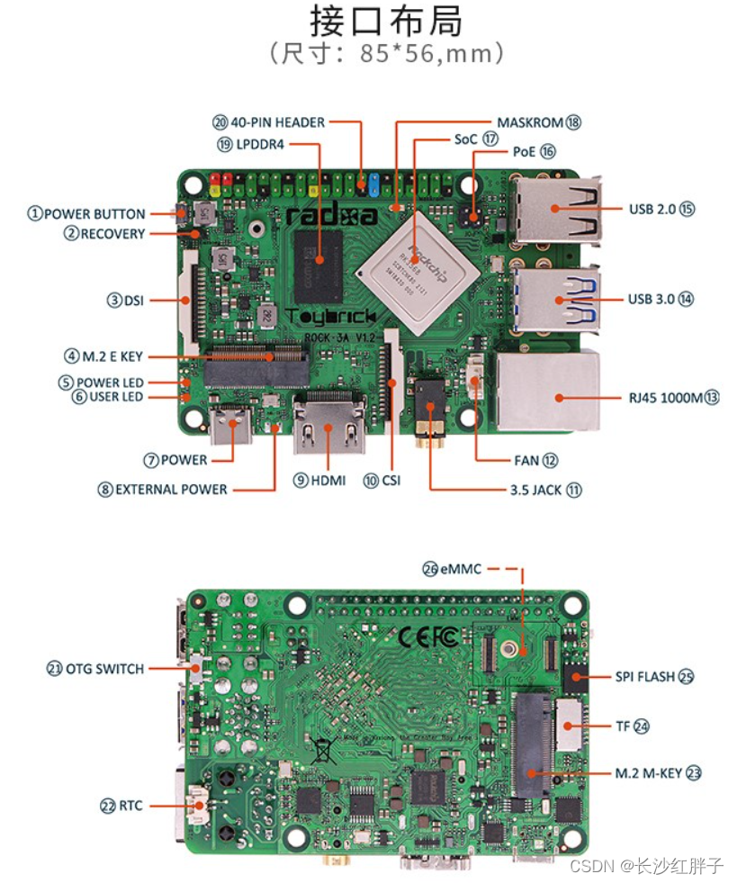 ROCK3 是 Radxa 的基于瑞芯微 RK3568 的 SBC(单板计算机)系列。它可以运行 android 或一些 Linux 发行版。 ROCK3 有两种型号,A 型和 B 型,A 型有 2GB、4GB、8GB 内存选项,B 型有 4GB 和 8GB 选项。