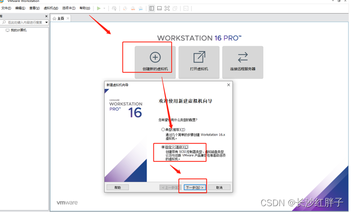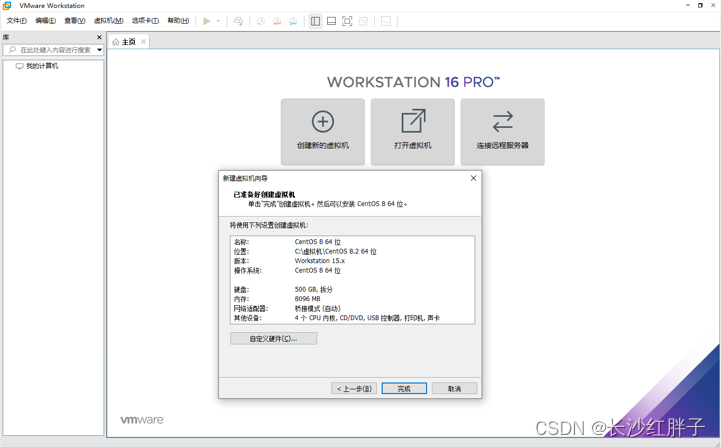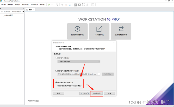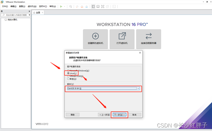下载VM16版本及以上的vmware虚拟机版本,否则没有CentOs8选项,自行百度下载安装。