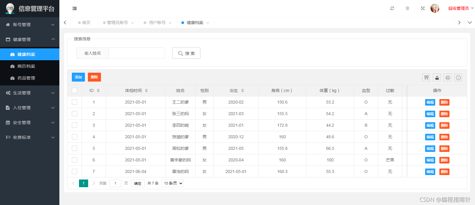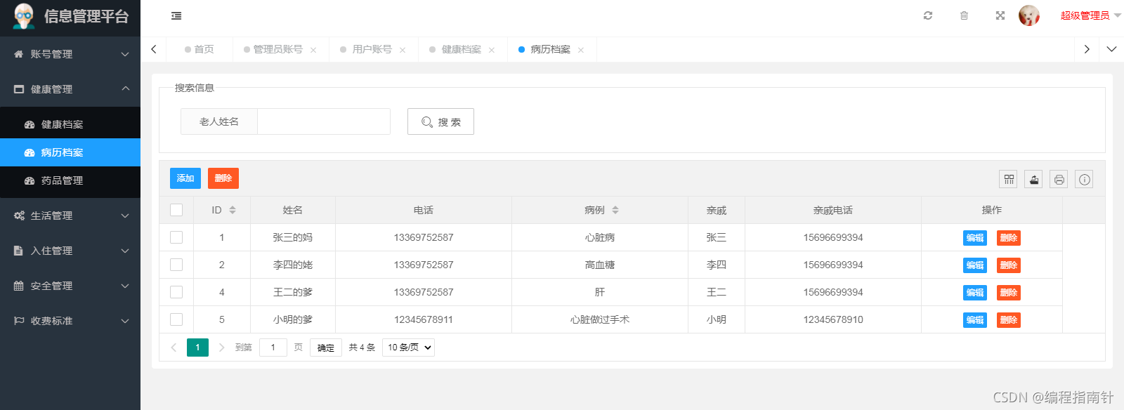 以上是基于Springboot开发的养老院管理系统的部分功能实现,本系统功能完整,界面美观大方,适合做毕业设计使用。