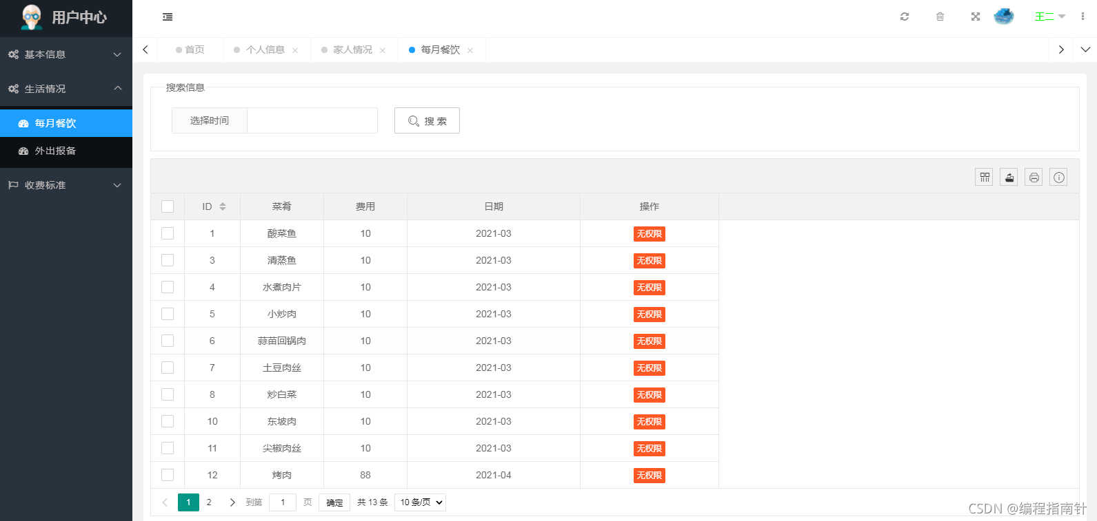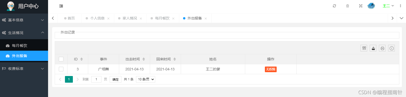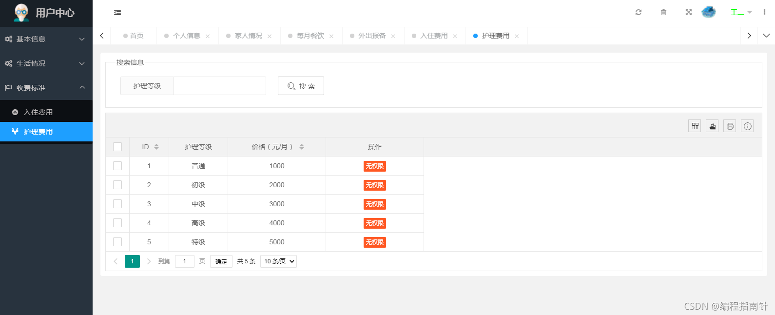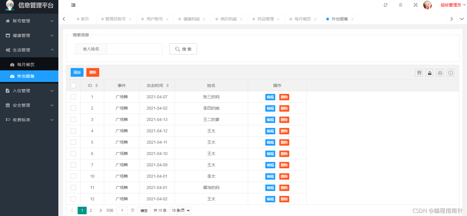 (3)查询老人的外出情况、餐饮情况、收费情况等