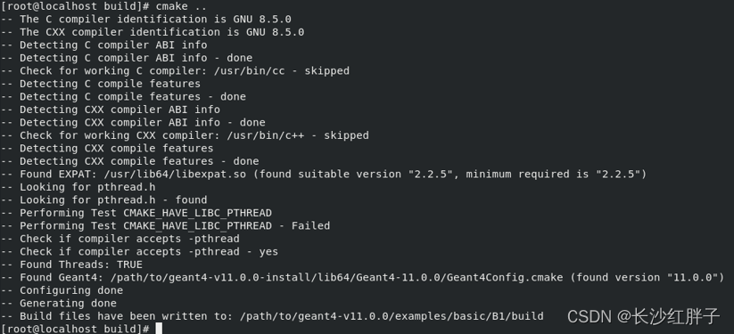 cd /path/to/geant4-v11.0.0/examples/basic/B1 mkdir build cd build cmake ..