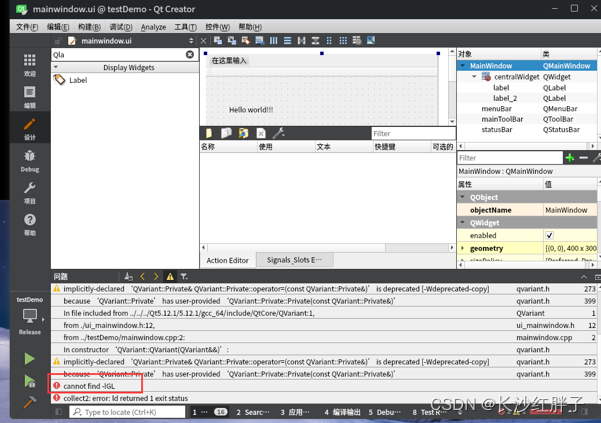 该错误在ubuntu上可以通过sudo apt-get install libgl1-mesa-dev解决,但是麒麟的源不同(笔者也没有尝试直接将麒麟的源改为ubuntu源),解决参考博文:《关于 国产麒麟系统编译Qt项目是报错:error: cannot find -lGL 的解决方法》。