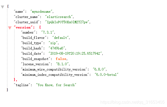 以上操作成功后 ,访问:http://localhost:9200 将显示下图表示安装成功!