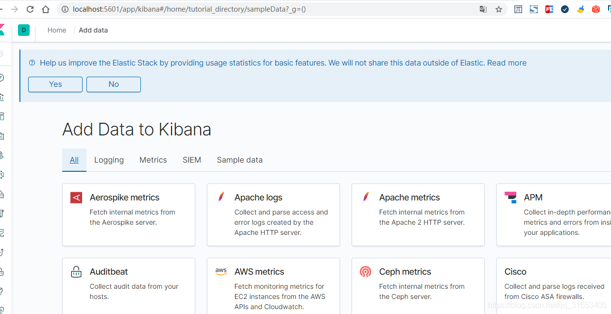 【4.1】成功安装后,在浏览器中输入地址:http://localhost:5602。则将显示如图: