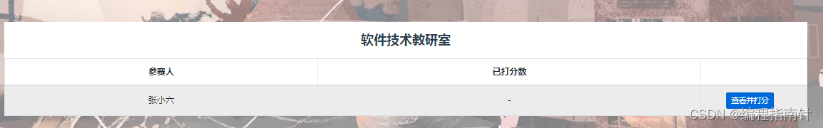 (5)评委打分功能;(每个评委给某一场比赛的选手打分 数据库表:比赛ID 选手ID 评委ID 分数)