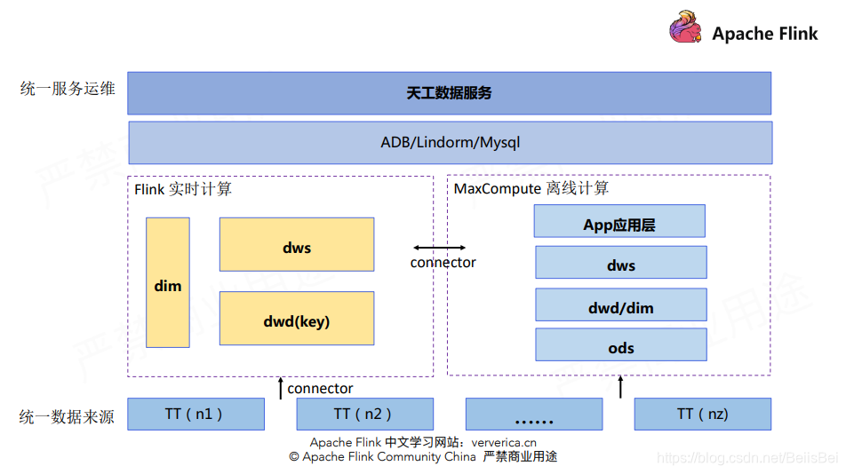 架构的亮点:connector 实现了离线计算的数据和实时计算的互通。