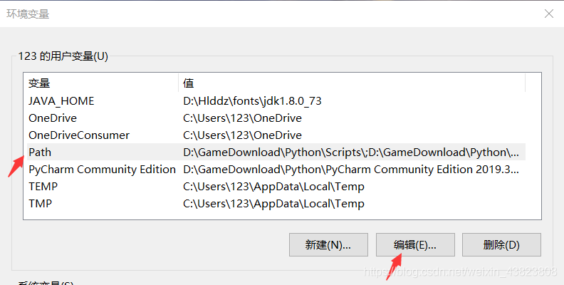 ③之后选择用户变量中的Path,点击编辑,再点击新建。