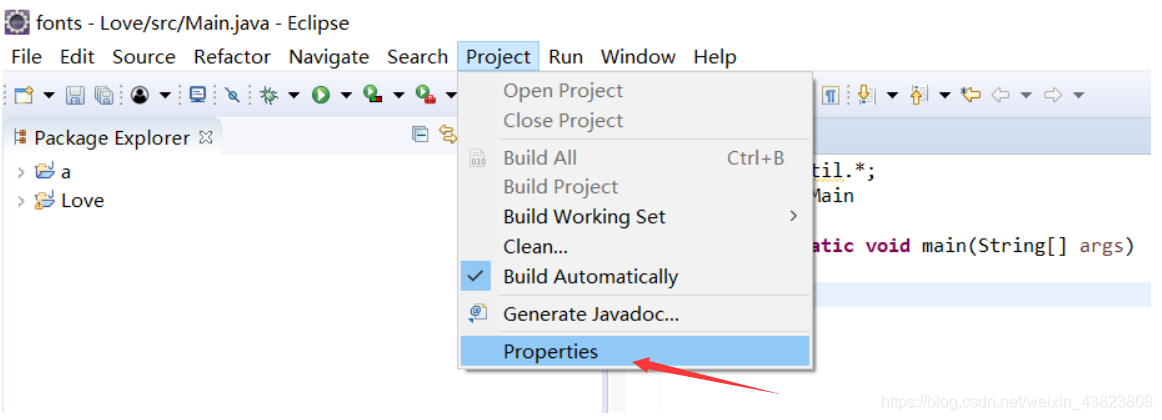 打开Eclipse集成开发环境,选择项目Project目录下的最后一个Properties,来看下面的截图步骤!!!👇👇👇