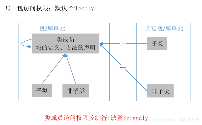 默认(default、friendly)定义的为缺省属性或方法,同一个包中的类可以进行访问,不同包中的类无法进行访问!!!