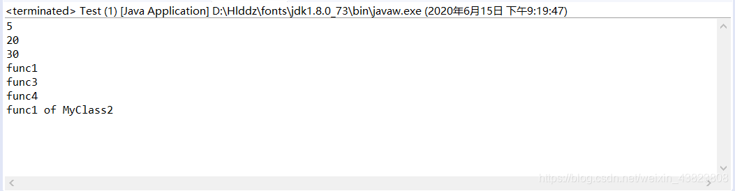 在这里,我们的类Test继承了类MyClass1,所以不仅仅是public定义的公共属性及方法可以访问,而且protected定义的受保护的属性及方法,也可以在其他包中的子类下进行访问,大家可以理解一下代码中的注释。程序的运行结果如下:👇👇👇