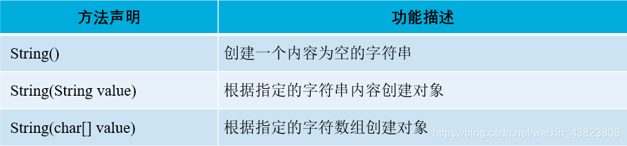 上述语法中,字符串同样可以为空或是一个具体的字符串。当为具体字符串时,会使用String类的不同参数类型的构造方法来初始化字符串对象。