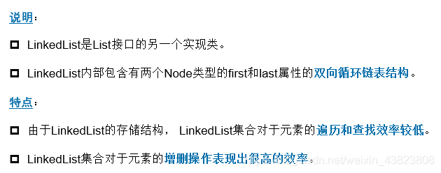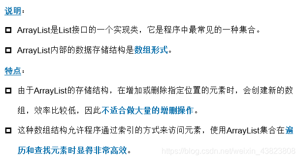特点:List 集合中允许出现重复元素,所有的元素是以一种线性方式进行存储的,在程序中可以通过索引(类似于数组中的元素角标)来访问集合中的元素。List集合还有一个特点就是元素有序,即元素的存入顺序和取出顺序一致。