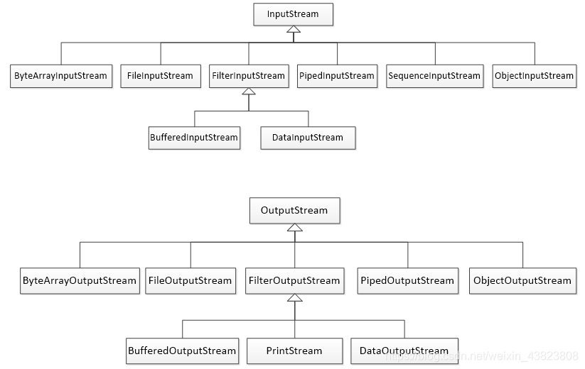 ②InputStream和Reader是输入流,而OutPutStream和Writer是输出流。