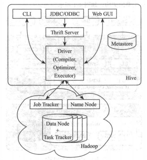 Hive 就是通过 CLI 、JDBC / ODBC 或者 HWI 接收相关的 Hive SQL 查询,并通过 Driver 组件进行编译,分析优化,最后变成可执行的 MapReduce。