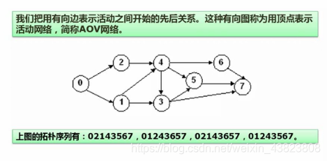 上图的拓扑排序序列除了这四种,还有:01246357、02146357。可见,对于同一张图的拓扑序列是不唯一的!!!