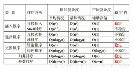 7.2.9 排序算法的时间复杂度、空间复杂度及稳定性