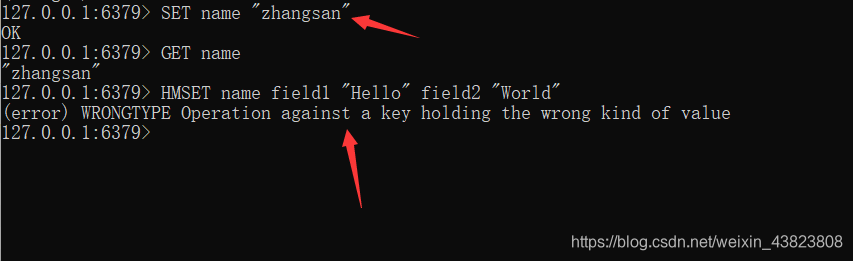 DEL runoob 用于删除前面测试用过的 key,不然会报错:(error) WRONGTYPE Operation against a key holding the wrong kind of value