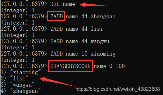 设置键值对:ZADD 添加一个元素到集合,元素在集合中存在则更新对应的score。添加成功返回1,反之返回0。 获取键值对:ZRANGEBYSCORE