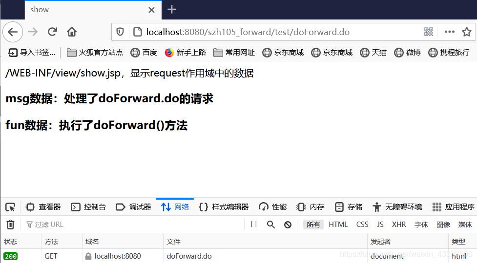 <%@ page contentType="text/html;charset=utf-8" language="java" %> <html> <head> <title>show</title> </head> <body> /WEB-INF/view/show.jsp,显示request作用域中的数据<br/> <h3>msg数据:${msg}</h3> <h3>fun数据:${fun}</h3> </body> </html>