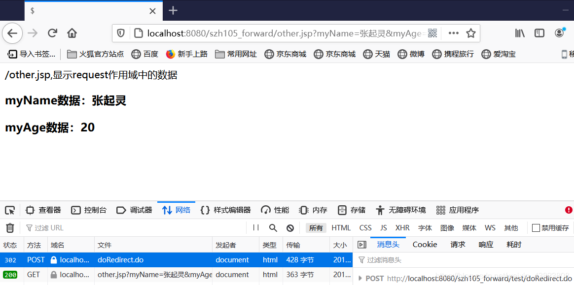 <%@ page contentType="text/html;charset=utf-8" language="java" %> <html> <head> <title>$</title> </head> <body> <p>/other.jsp,显示request作用域中的数据</p> <h3>myName数据:${param.myName}</h3> <h3>myAge数据:${param.myAge}</h3> </body> </html>