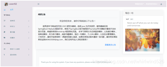 本项目基本Springboot开发实现,并同时使用Springmvc+mybatis框架来进行开发实现,主要实现一个在线学习英语的基于B/S结构的学习系统。本英语学习项目是为了满足学生学习英语的需求而开发,在本系统中学生可以通过背单词,每日一句,听听力,看阅读等方式加深对英语的学习与了解。