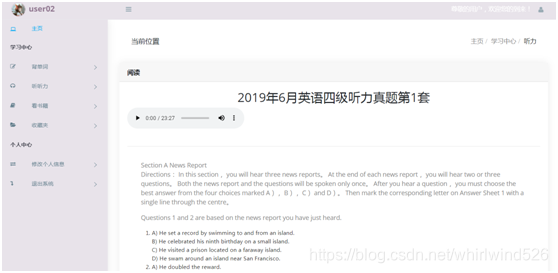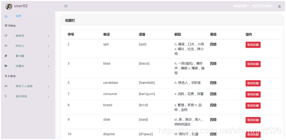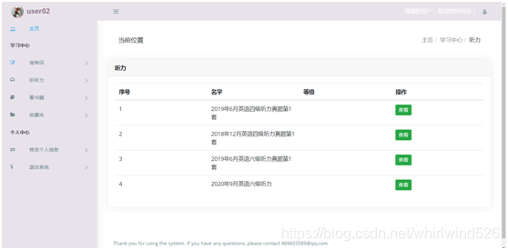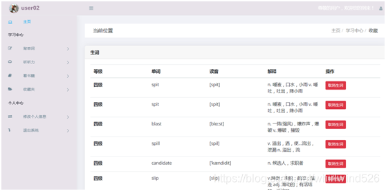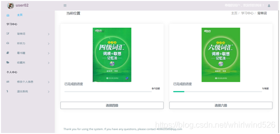 前端用户登陆系统后可以选择四级或六级进入后查看背诵单词