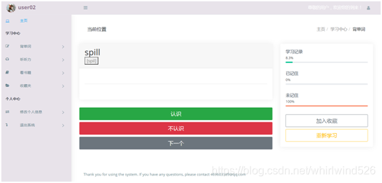 - 用户可以点击收藏,认识,不认识,下一个等按钮进行学习