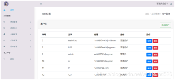 在此模块主要实现对用户的添加、查询、修改、删除操作