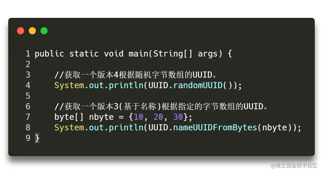 在JDK自带的UUID类可以产生版本3和版本4的UUID。所以这里简单介绍一下版本3和版本4的UUID的生成方式。