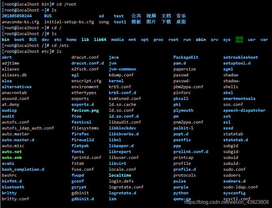 上面两张图主要就是查看一下 bin、root、etc目录下存放的文件内容,熟悉熟悉。。。