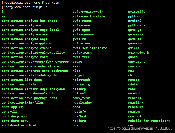 2. bin ->usr/bin : 存放系统预装的可执行程序,这里存放的可执行文件可以在系统的任何目录下执行。