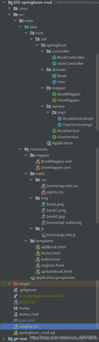 这个小项目呢,主要是因为最近在学习SpringBoot的入门阶段的内容,其中包括(集成MyBatis、使用RESTful风格、打jar、war包并部署到tomcat、引用Thymeleaf模板引擎),学完这部分之后,就感觉使用SpringBoot做开发,相比之前的SSM真的方便简化太多了,代码量减少了(印象最深的就是pom.xml文件中的依赖项大大减少、不用再写xml配置文件等等)。这个真的强,所以就联想出来了这样一个简单的图书管理系统。最后说一句:SpringBoot yyds😄😄😄