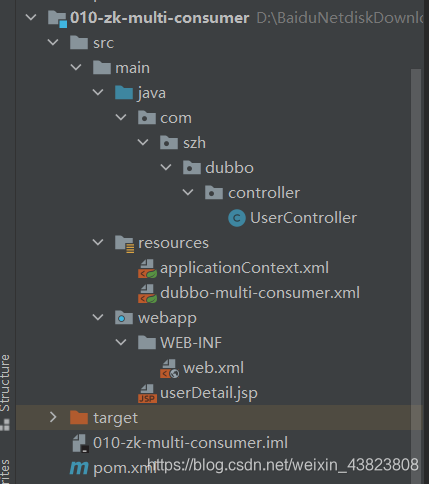 这个代表的是服务消费者,其中包含一个控制层方法的实现,去响应之前的服务接口。