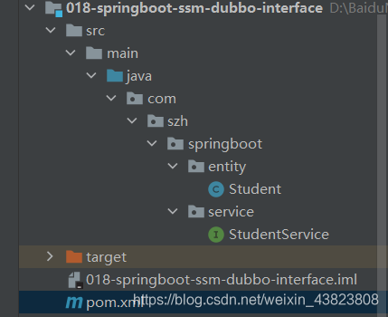 因为这是一个接口工程,所有它还需要实体bean(集成Dubbo的实体bean必须实现序列化)和servic业务接口。