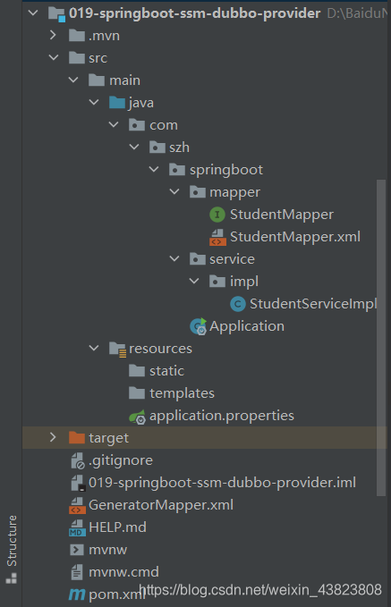 因为它是一个SpringBoot工程,是一个集成Dubbo之后的服务提供者,所以它还需要dao、mapper、对接口工程中接口方法的实现。