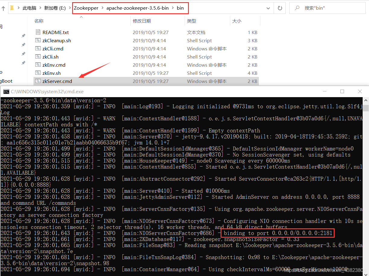 1. 启动zookeeper注册中心(zkServer.cmd),我这里直接就在Windows端启动了。