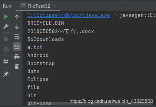 package com.szh.io; import java.io.File; /** * */ public class FileTest02 { public static void main(String[] args) { File file=new File("E:/"); //获取当前目录下的所有子文件 File[] files=file.listFiles(); for (File file1 : files) { //获取所有子文件的绝对路径 //System.out.println(file1.getAbsolutePath()); //获取所有子文件的文件名 System.out.println(file1.getName()); } } }