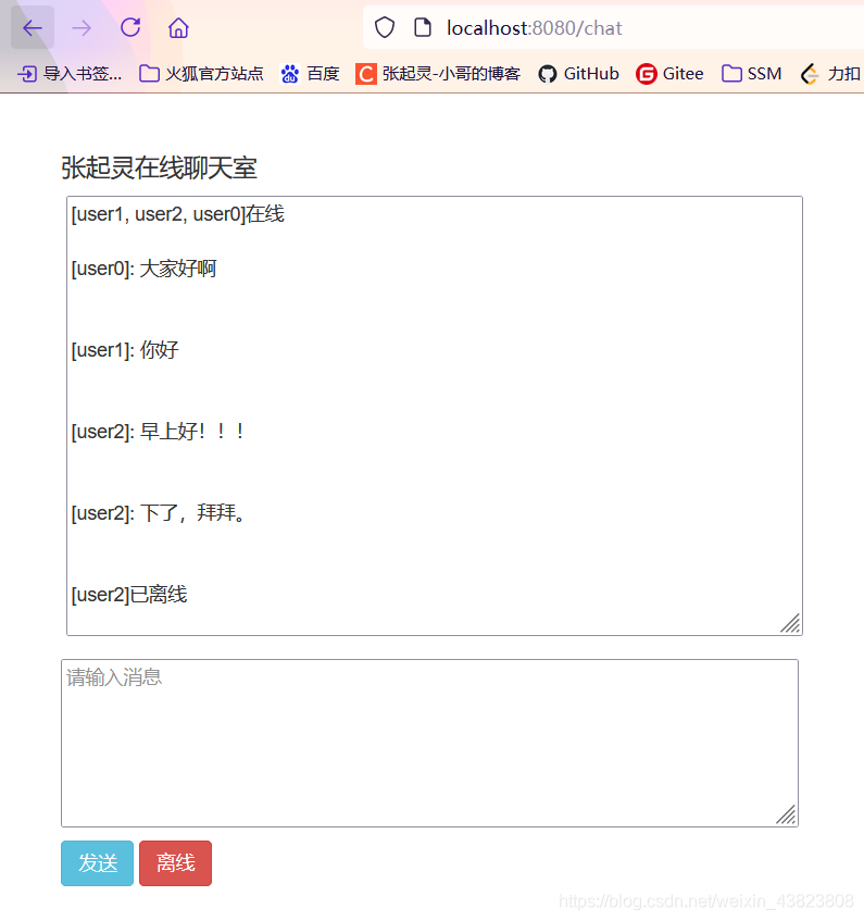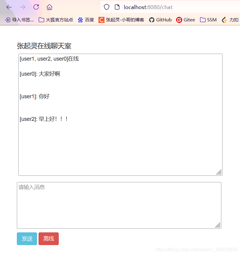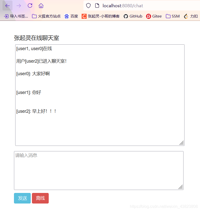 分别在浏览器中访问三次请求地址就可以开启三个用户的聊天室了。