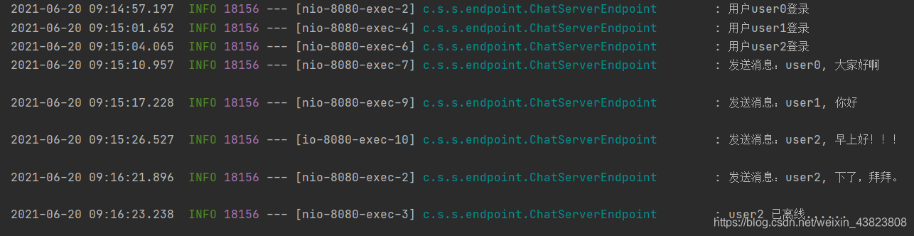 最后依次点击user1和user0的离线按钮,因为我们之前代码中用到了Slf4j,所以我们此时回到IDEA中查看控制台打印的日志信息。