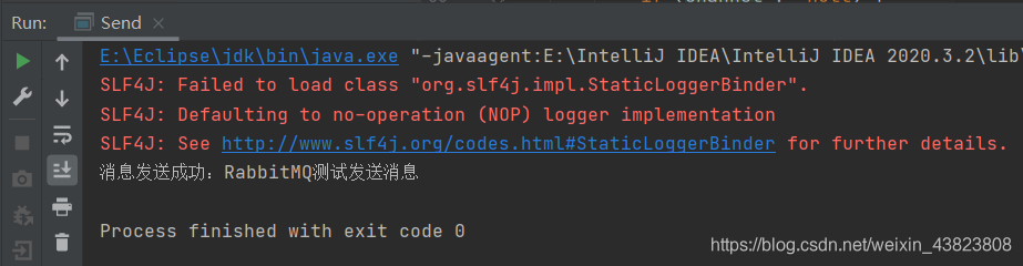 然后在浏览器中输入 http:// RabbitMQ服务器ip:15672,访问登录(用户名root,密码root),之后执行消息发送类。